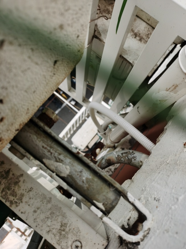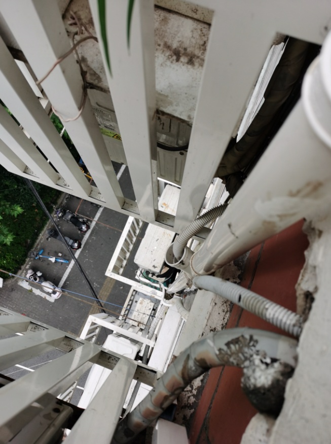 为及时解决问题,执法人员逐层排查楼上空调安装情况,发现5楼某室空调排水管管体老化缺损、冷凝水正在滴落。执法人员现场释法,责令当事人更换排水管并接入统一收集系统,当事人于当日完成整改。