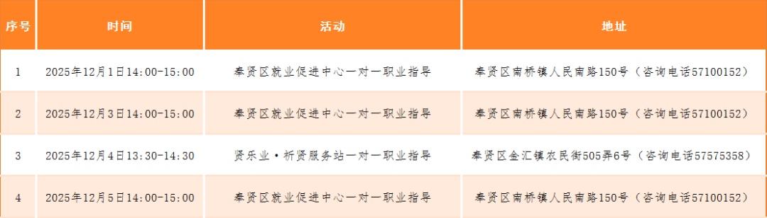 为助力重点群体实现就业,奉贤区“15分钟就业服务圈”服务站点各类活动安排新鲜出炉,为你的就业创业之路暖心护航。本周活动抢先知,精彩别错过。