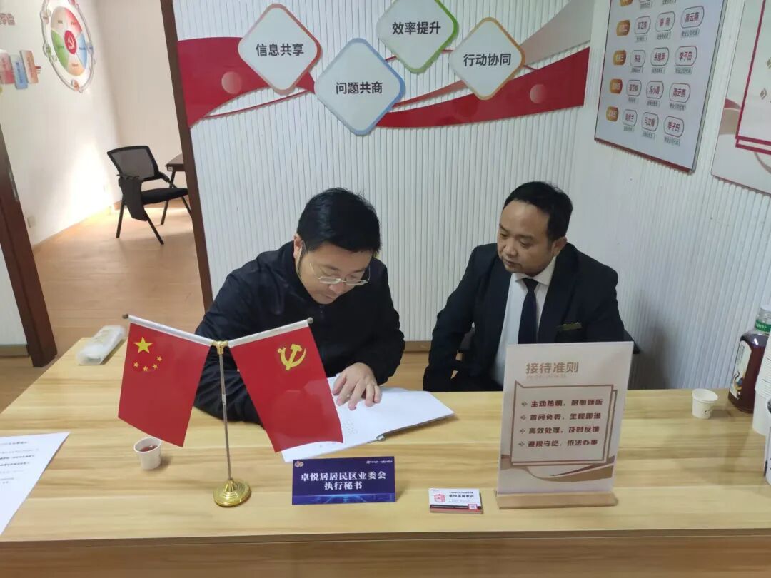 “上次家里水管漏水,物业让我找业委会申请维修基金,业委会说要居委会先盖章,居委会又说要物业现场鉴定。三个地方跑下来,问题没解决,倒把小区绕了好几圈。”提起过去办事的曲折,卓悦居居民李女士记忆犹新。