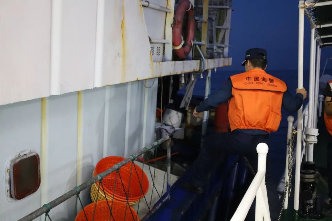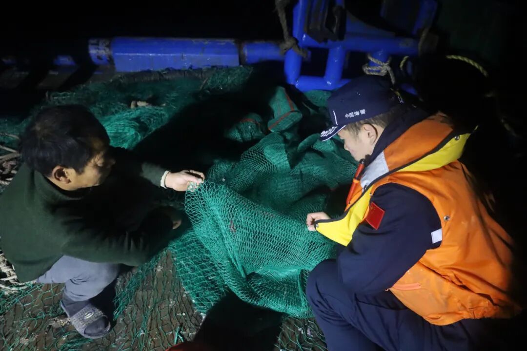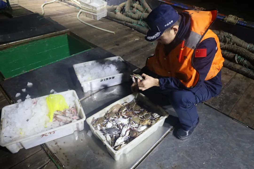 近日,奉贤海警局执法艇执行任务时,在海底电缆管道保护区附近发现一渔船在海底光缆路由途径地来回航行,行迹十分可疑。执法员当即鸣响警笛、喊话沟通并亮明身份,开展登临检查,对船舶证书、船员证件、渔网渔具及渔获物进行全面检查,并同步固定相关证据。