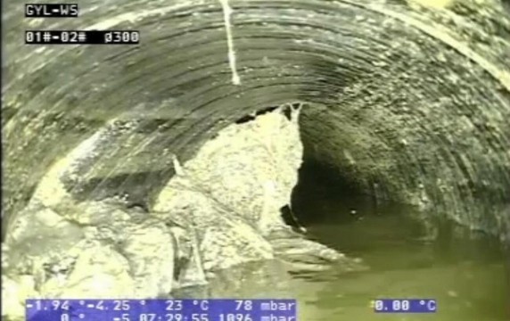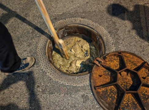经查,该段排水管网淤塞严重,因无法进一步判断是结构性损坏还是功能性问题,暂时采取高压水枪疏通堵塞段。同时,奉贤区排水所迅速安排养护队伍进行抢险疏通,并调集吸污车抽取小区污水,防止冒溢倒灌。经过多方协同努力,当晚20时市政污水管道初步疏通,但经验判断仍有堵塞。经CCTV检测发现大块油污阻塞近半管径,影响污水输送能力。工作人员在CCTV画面监控下,通过长柄钩逐点戳散油块,最后清捞冲洗干净,污水管道堵塞问题得以彻底解决。
