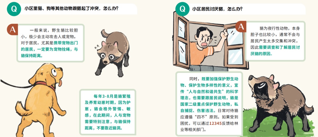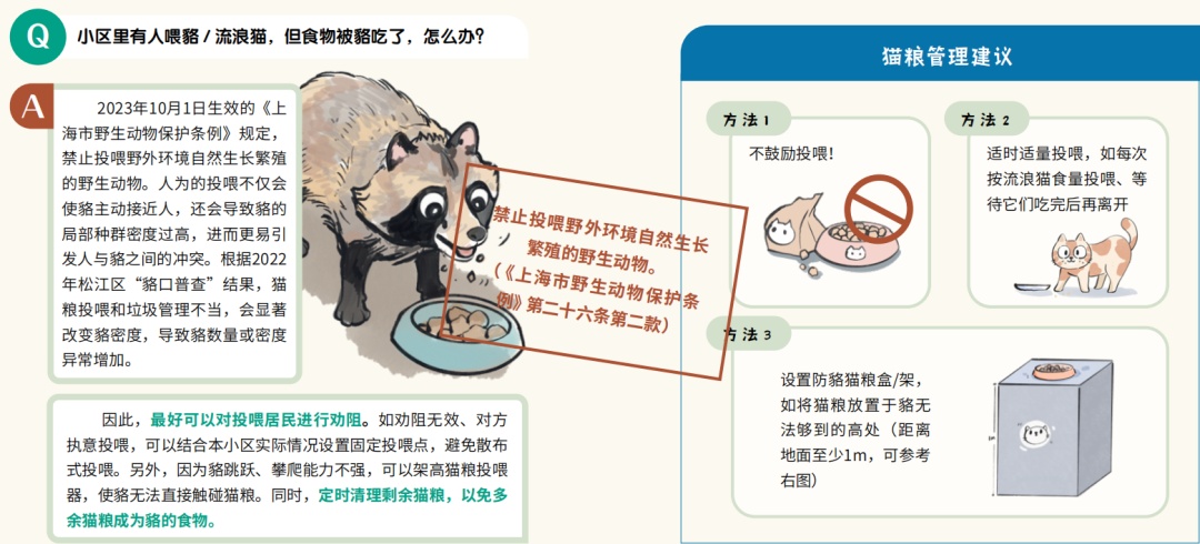 对此,王放表示,貉密度太高仍是源于猫粮投喂和湿垃圾管理不当:“志愿者在样线调查中,除了记录貉是否现身外,也会记录小区是否有猫粮投喂和垃圾溢出点。我们发现,在有猫粮、外卖餐盒较多或湿垃圾外溢的小区,貉密度大概会翻三倍。这会导致居民不满、投诉以及小区环境的负面变化。”