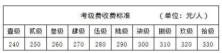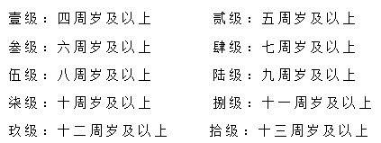 考生在报名前请仔细衡量,按自己的实际水平报考相应级别。 报考年龄及对应报考级别: 壹级:四周岁及以上 贰级:五周岁及以上 叁级:六周岁及以上 肆级:七周岁及以上 伍级:八周岁及以上 陆级:九周岁及以上 柒级:十周岁及以上 捌级:十一周岁及以上 玖级:十二周岁及以上 拾级:十三周岁及以上 考生须根据年龄与对应级别逐级报考。报考肆级(含肆级)及以上考生报名时须校验本人前一级考级合格证书,不可连报。 考生报名时,请按要求如实填写报考信息并上传本人近期免冠报名照(正面证件照,jpg格式,大小1M以内)。 考生报考时须一次性缴纳费用,中国视协考级收费标准如下(该费用包含报名费及中国视协40元/本的证书工本制作代办费)。 报考成功,将无法修改信息和退费,请考生务必仔细填写和核实。如信息提供不实,导致无法参加考级或领取证书等情况,由报考人自行承担责任。