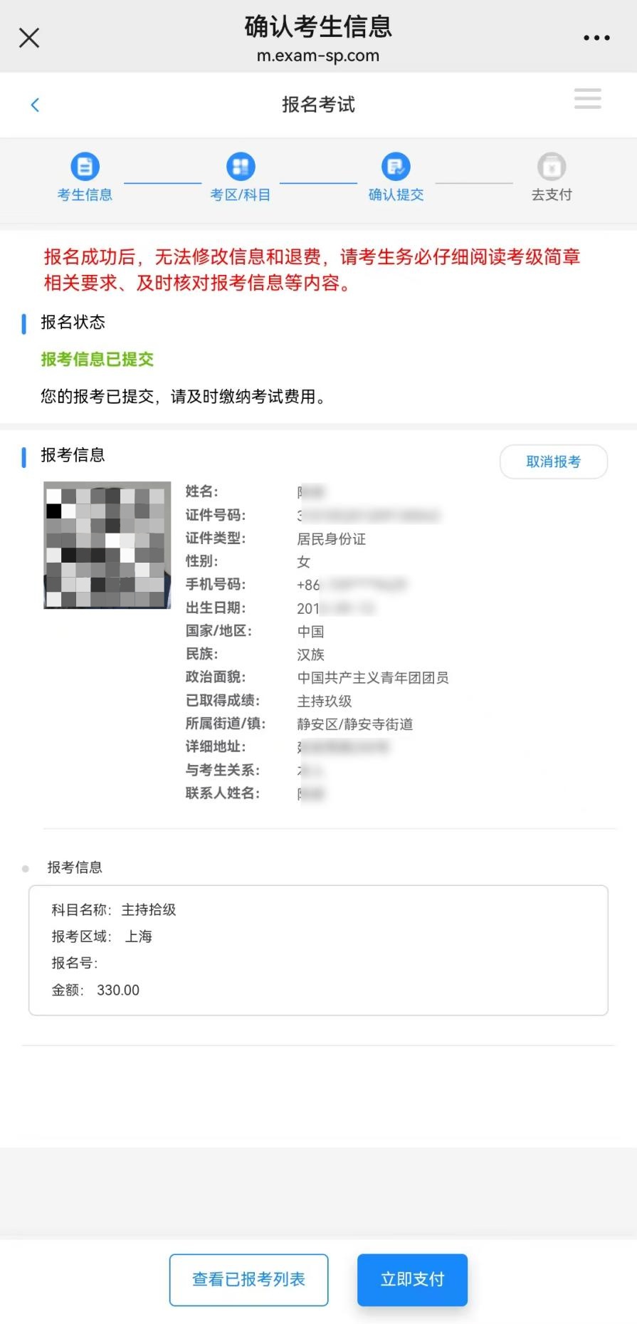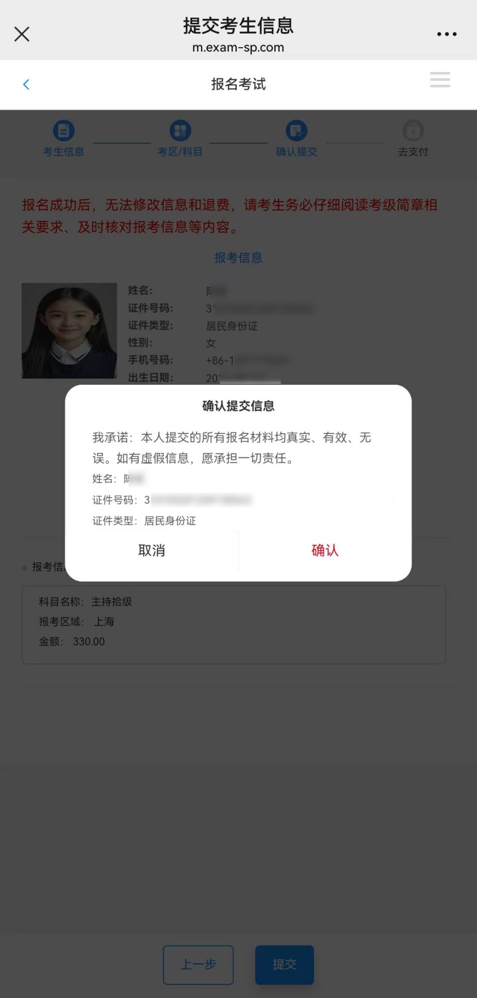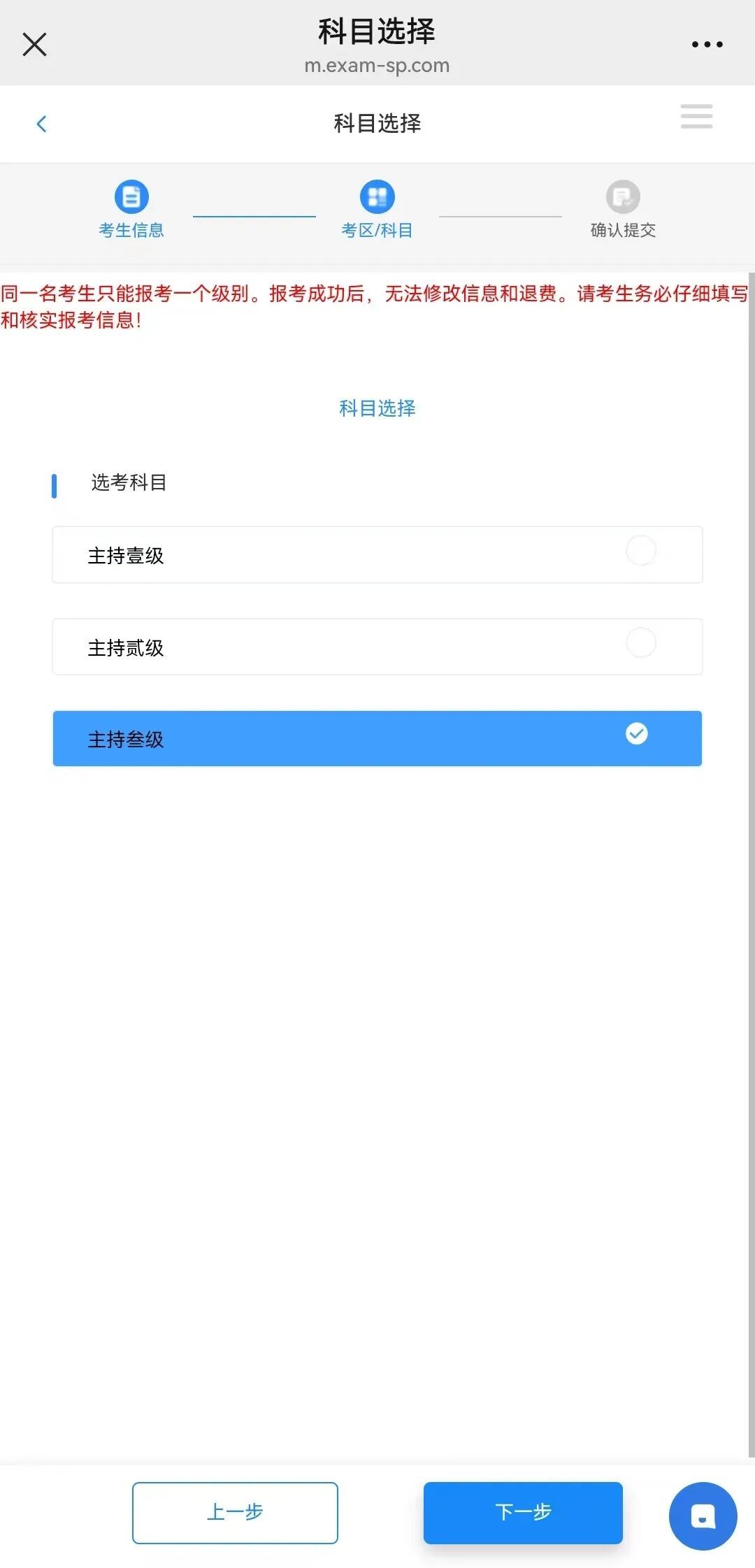 请务必确认报考级别的准确性再提交,一旦提交,考生将不可再修改!