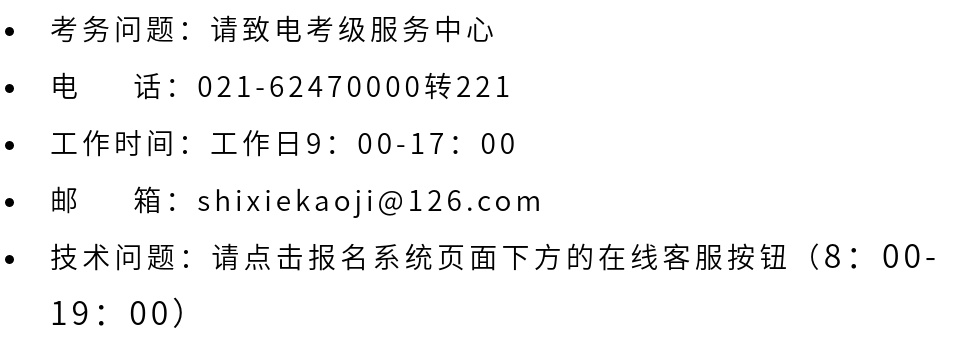 答:考生须根据年龄与对应级别逐级报考。报考肆级(含肆级)及以上考生报名时须持有前一等级的合格证书方可报考,一次只能报考一个等级的考试。初次报名的考生请仔细衡量,按自己的实际水平报考相应级别。系统内也仅会显示本次能报考的级别。考生若发现系统显示级别与实际所能报考级别不相符的,请立即停止报考,并致电考级服务中心。