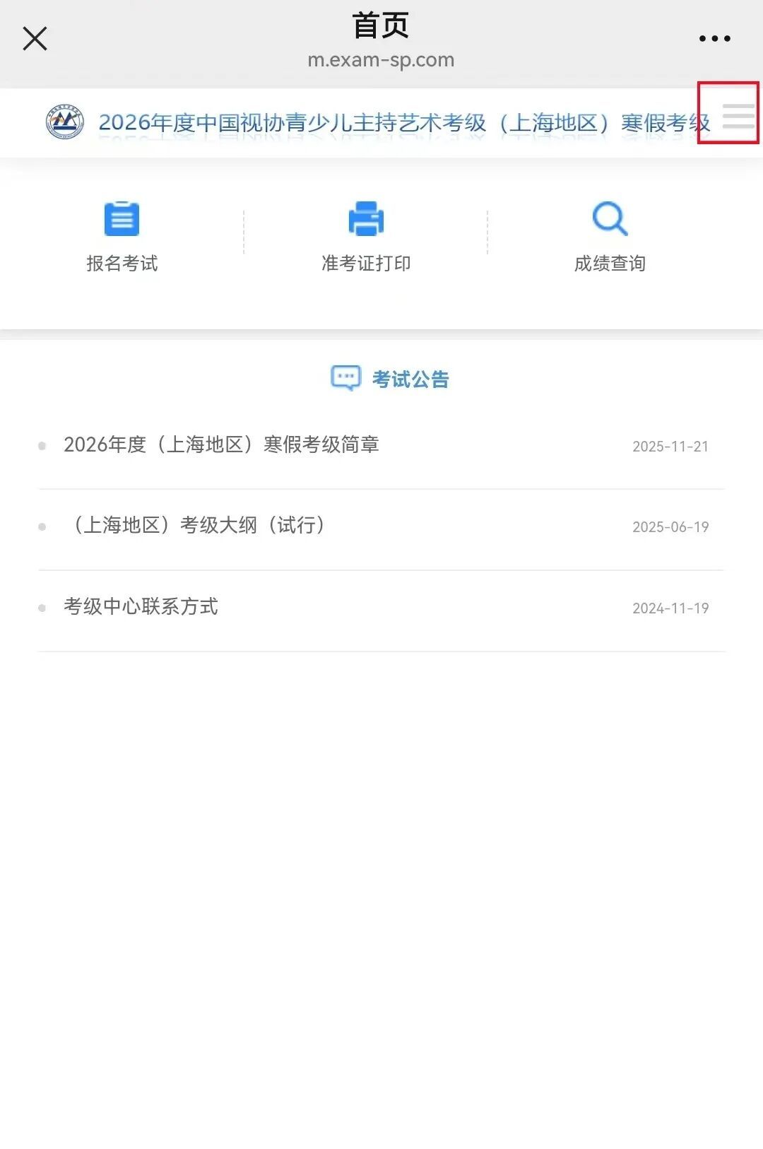 报名时间(2025年12月1日00:00—12月10日24:00)开启后,进入“考级中心” ,选择“考级报名”,点击“2026年度主持考级”链接。