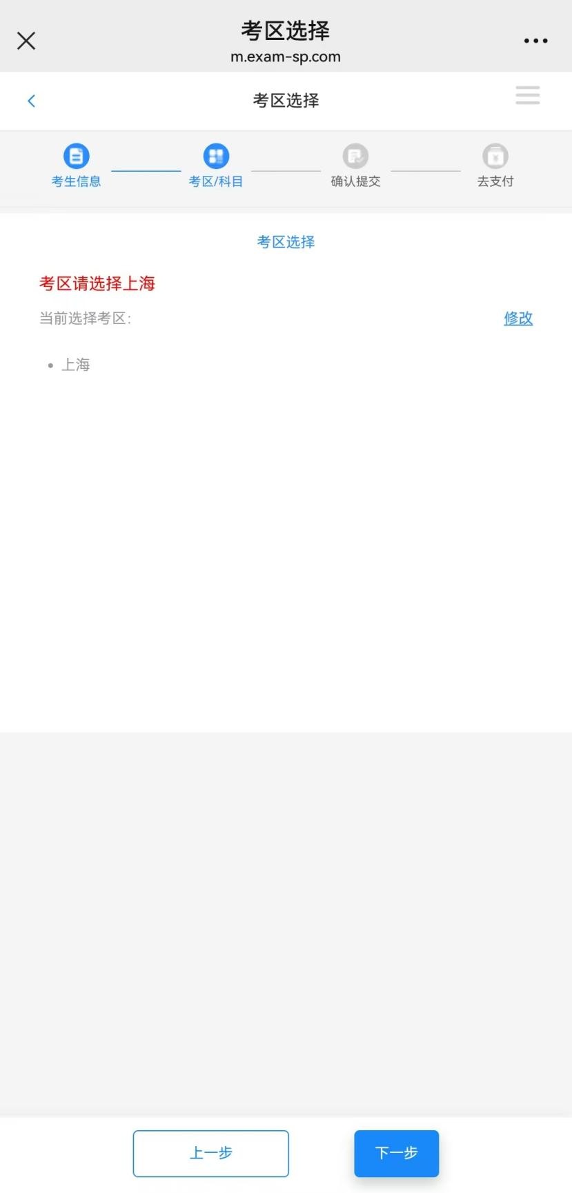 本次报名仅在上海地区开展,考区请统一选择“上海”