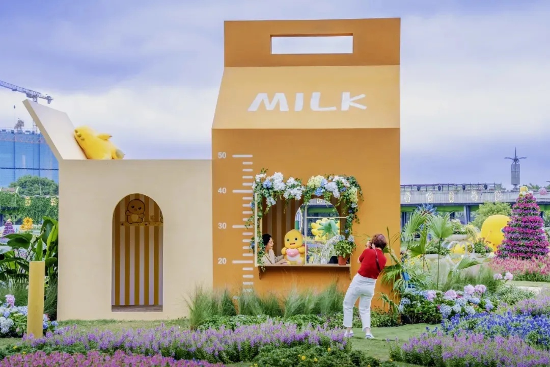 而秋季的“奶龙的花花宇宙”主题花展更是突破了以往的布展形式,将沉浸奶龙IP展、花卉景观、跨界艺术、光影夜花园四展合一,为市民游客打造了一个可游、可赏、可感的秋季童话世界。