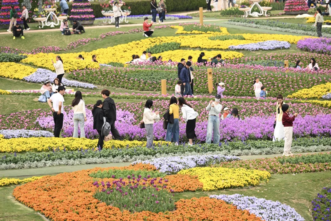 今年3月开始的春季花展,园内郁金香、油菜花、绣球、芍药等品种陆续盛开,430000平方米的奇迹花园区成为花的海洋。