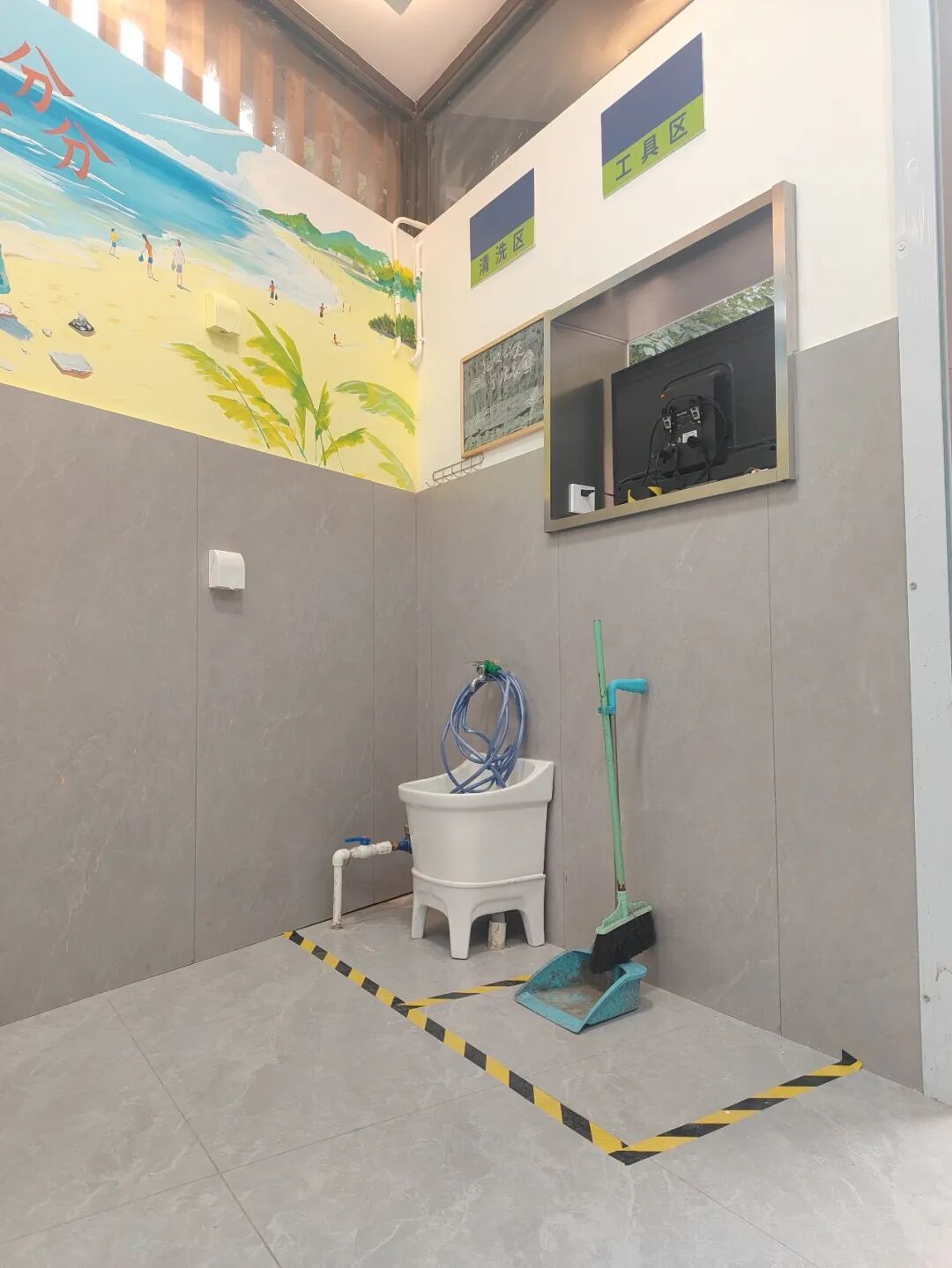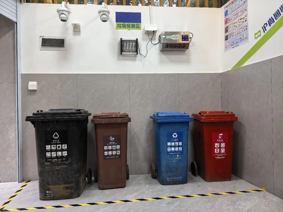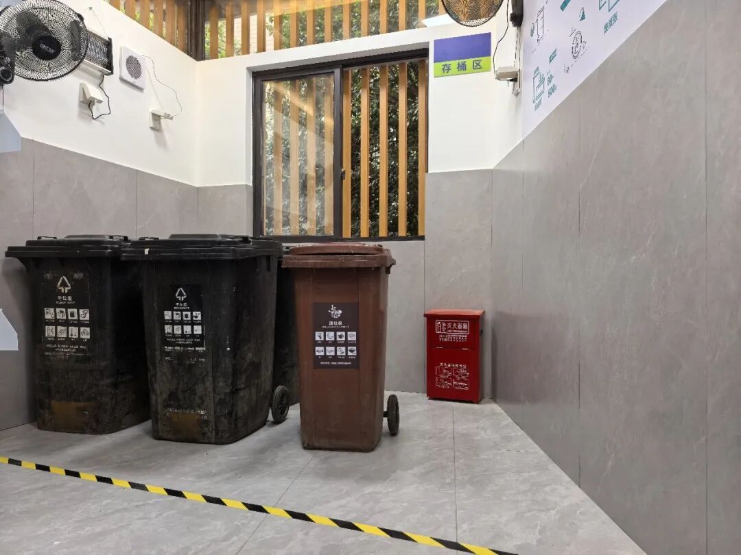 细心的人还会发现,这里的垃圾桶变多了,垃圾堆积的现象几乎看不到了。垃圾房里不仅装了排风扇、灭蝇灯,还有自动除臭喷淋装置,旁边也配备了洗手池——扔完垃圾洗个手,清爽又卫生。