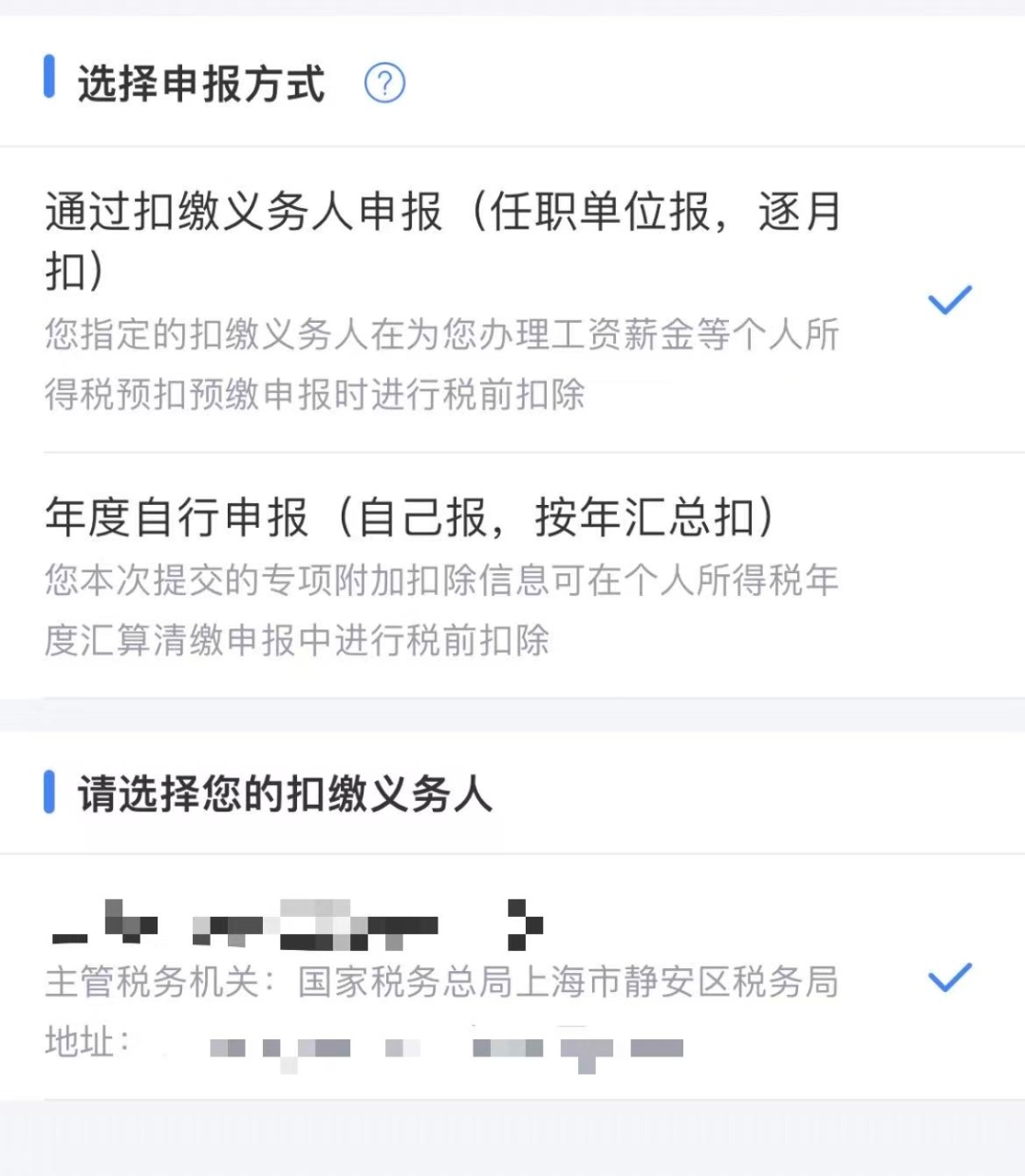 4.如有工作单位(扣缴义务人),选择申报方式“通过扣缴义务人申报”。