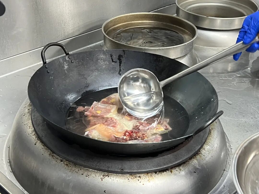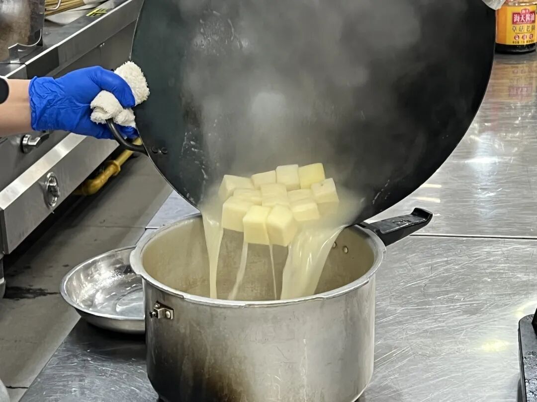 这里有个小技巧:甲鱼焯洗过后,上面附着的油块需要剔除干净,这样能去除腥味,让甲鱼更加鲜美。