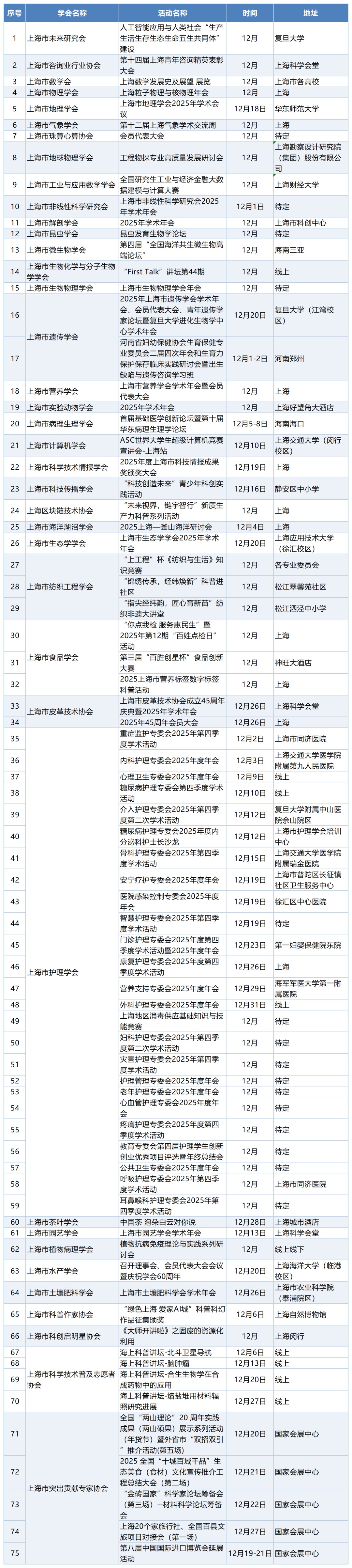 市科协所属学会12月活动预告 | 学会事