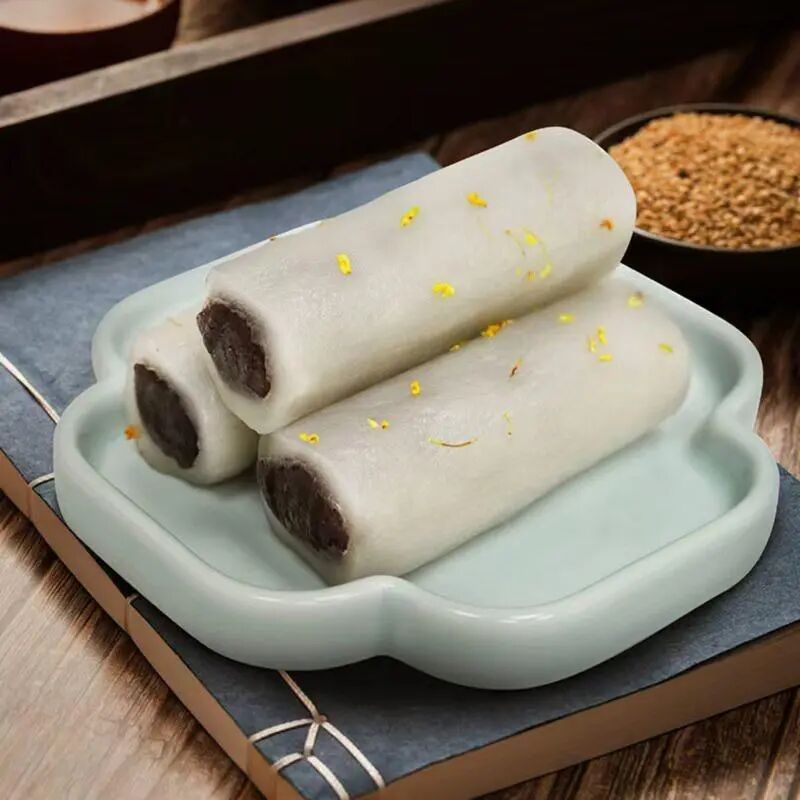 糯米皮子温柔地裹着乌红色的豆沙馅料,