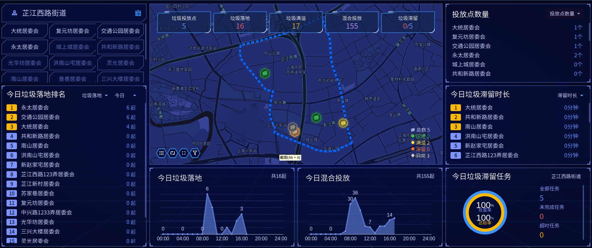 更让人惊喜的是,这个垃圾房还很“聪明”。里面装了智能监控系统,能自动识别小包垃圾落地、垃圾桶满溢,甚至谁不小心扔错了垃圾,它也能发现。这些信息会实时传到街道城运中心的“一网统管”平台,自动派单、自动提醒整改,还能自动结案。从发现问题到处理完成,全程不用人工干预,识别率和整改率都达到100%,真正做到了“一网管到底”。