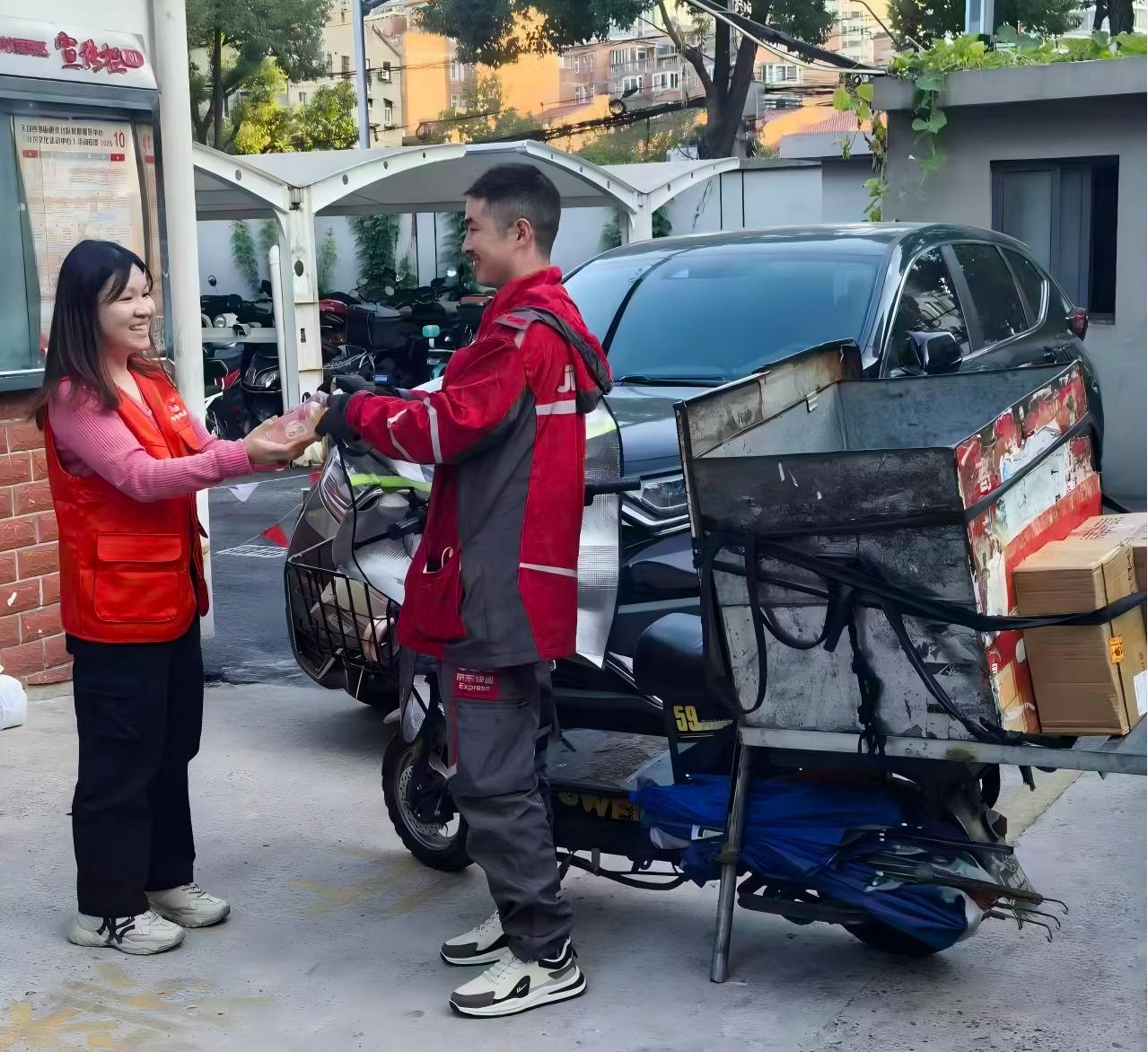 天目西路街道的铁路新村是典型的老旧小区,老年居民占比高,不少楼道缺乏安全扶手,陡峭的台阶成为老人上下楼的“拦路虎”。常年穿梭于小区的快递小哥们看在眼里、急在心上,在一次次伸手搀扶中,他们真切感受到老人对安全扶手的迫切需求。