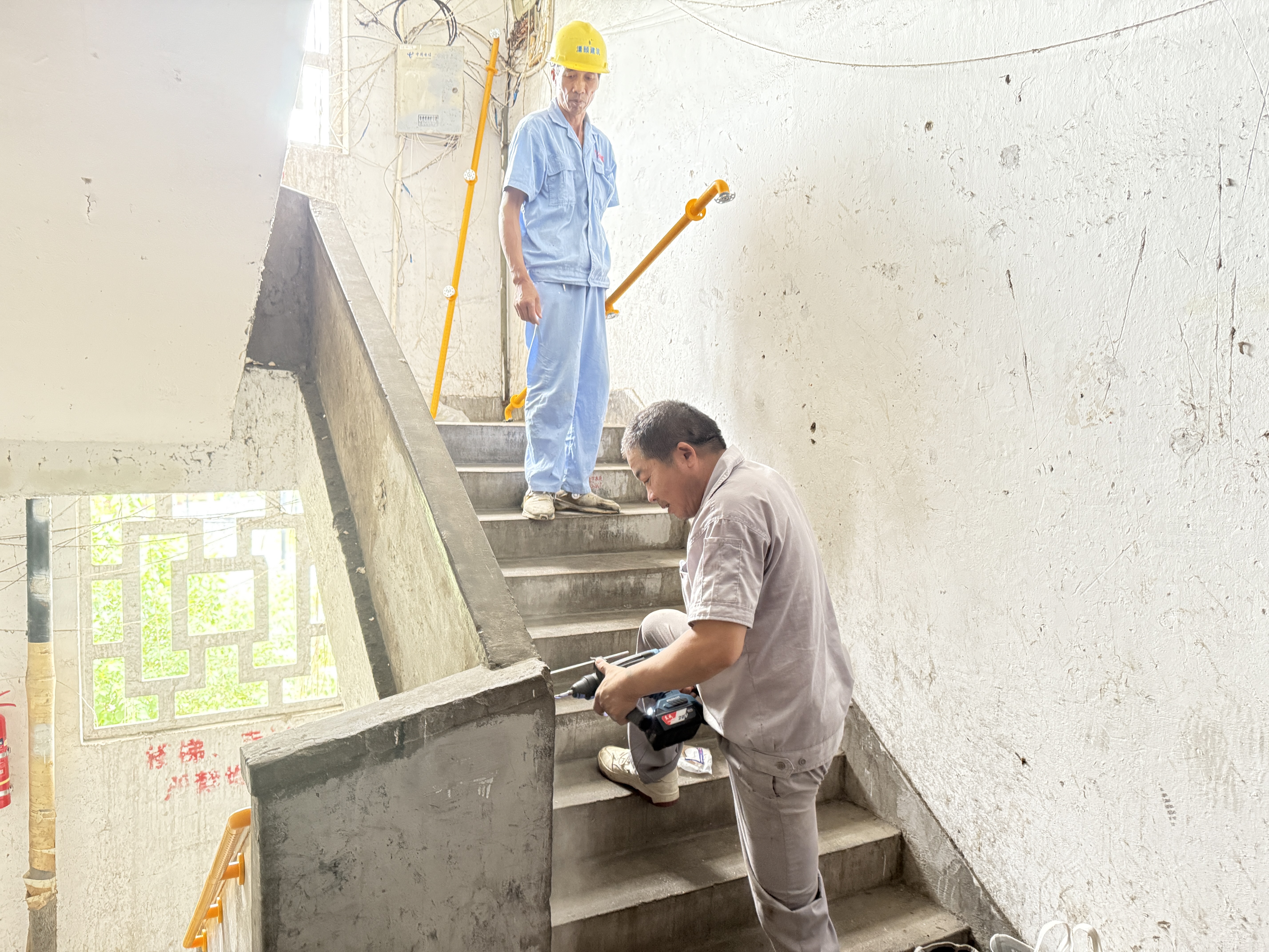 适老化扶手的加装,更是暖到了老人心坎里。居民区重点选取老年人集中居住、楼梯陡峭且无扶手的楼道作为改造对象。社工与楼组长入户征询老人意见,确定扶手的高度和固定方式。施工中选用防滑、触感舒适的材质,确保安装牢固、使用安全。改造后,老人上下楼有了可靠支撑,出行安全性显著提升。