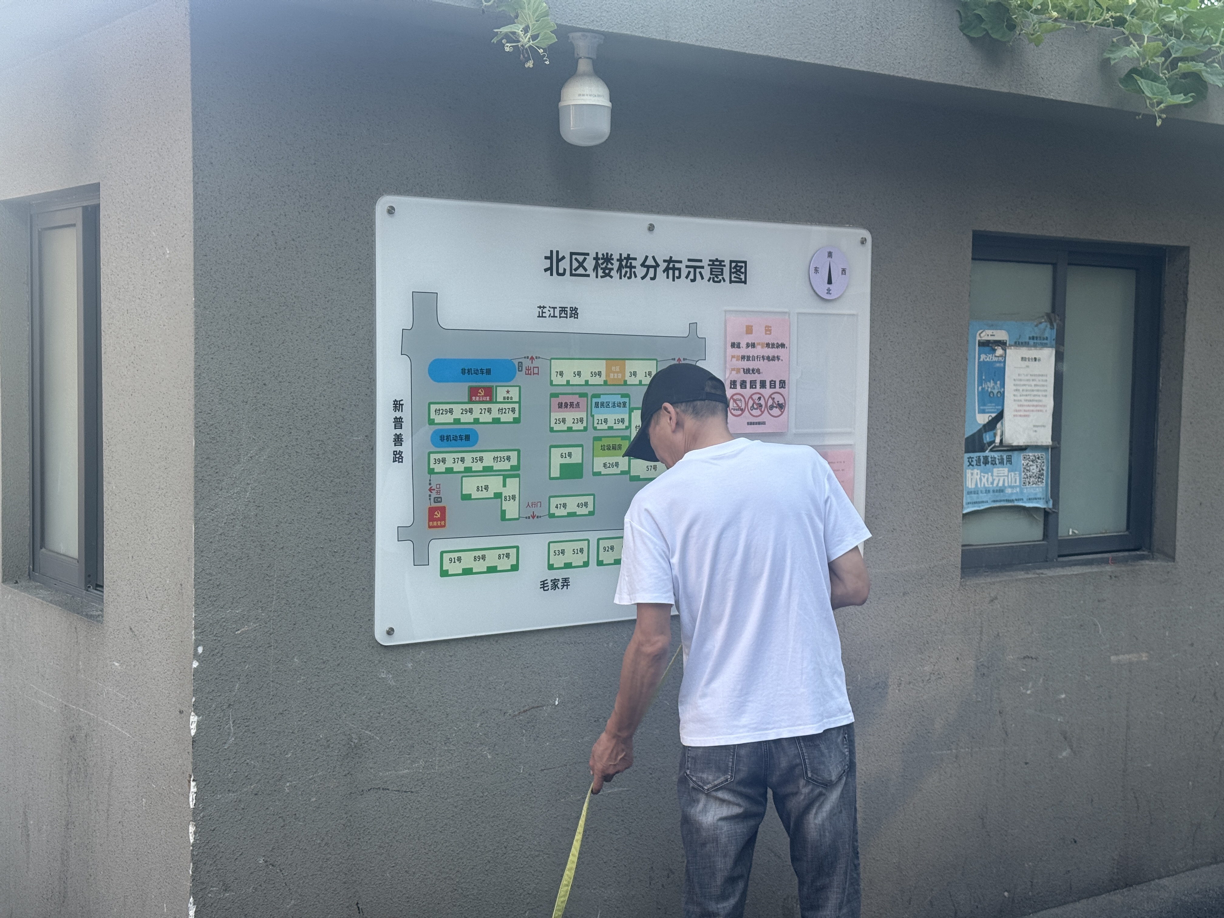 楼栋指引牌的升级,处处体现着“细节”。考虑到楼栋布局复杂,小区在出入口、主干道交叉口以及容易迷路的关键位置,安装了多块醒目的指引牌。同时,特别采纳了快递小哥的建议,选用绿底白字的高对比度配色,搭配大号加粗字体,并加装了反光膜,确保夜间照明不足时依然清晰可见。此外,在小区主入口,一块大型总平面图详细标注了每栋楼的位置和周边设施,让初来乍到者一目了然。
