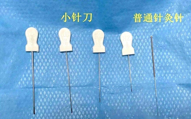 小针刀不是传统意义上的“手术刀”,是一种融合中医针灸“针”的针刺作用与西医外科“刀”的切割、松解作用的微创诊疗器械,其形态类似针灸针,但针体前端带有一微小刀刃(通常宽度仅0.4~1.2毫米)。
