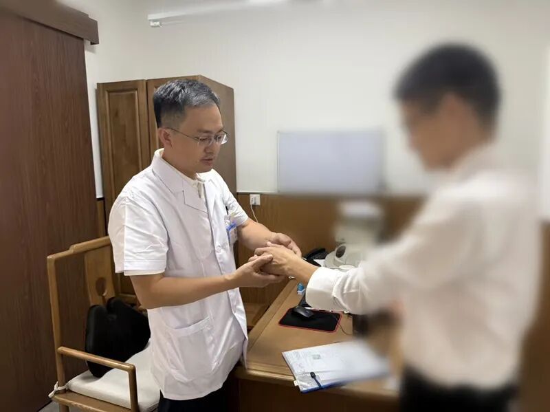 据了解,今年6月起,患者张先生因长期使用键盘左手拇指突然活动受限、无法顺利伸直,还伴随着阵阵疼痛。这一症状严重影响了他的日常生活与工作,握笔、拿东西都变得十分困难,甚至连抱孩子这样简单的亲子互动都难以完成。他辗转多家医院,尝试了口服止痛药、外敷膏药、针灸理疗等多种治疗方式,可症状始终反反复复,效果不尽如人意。
