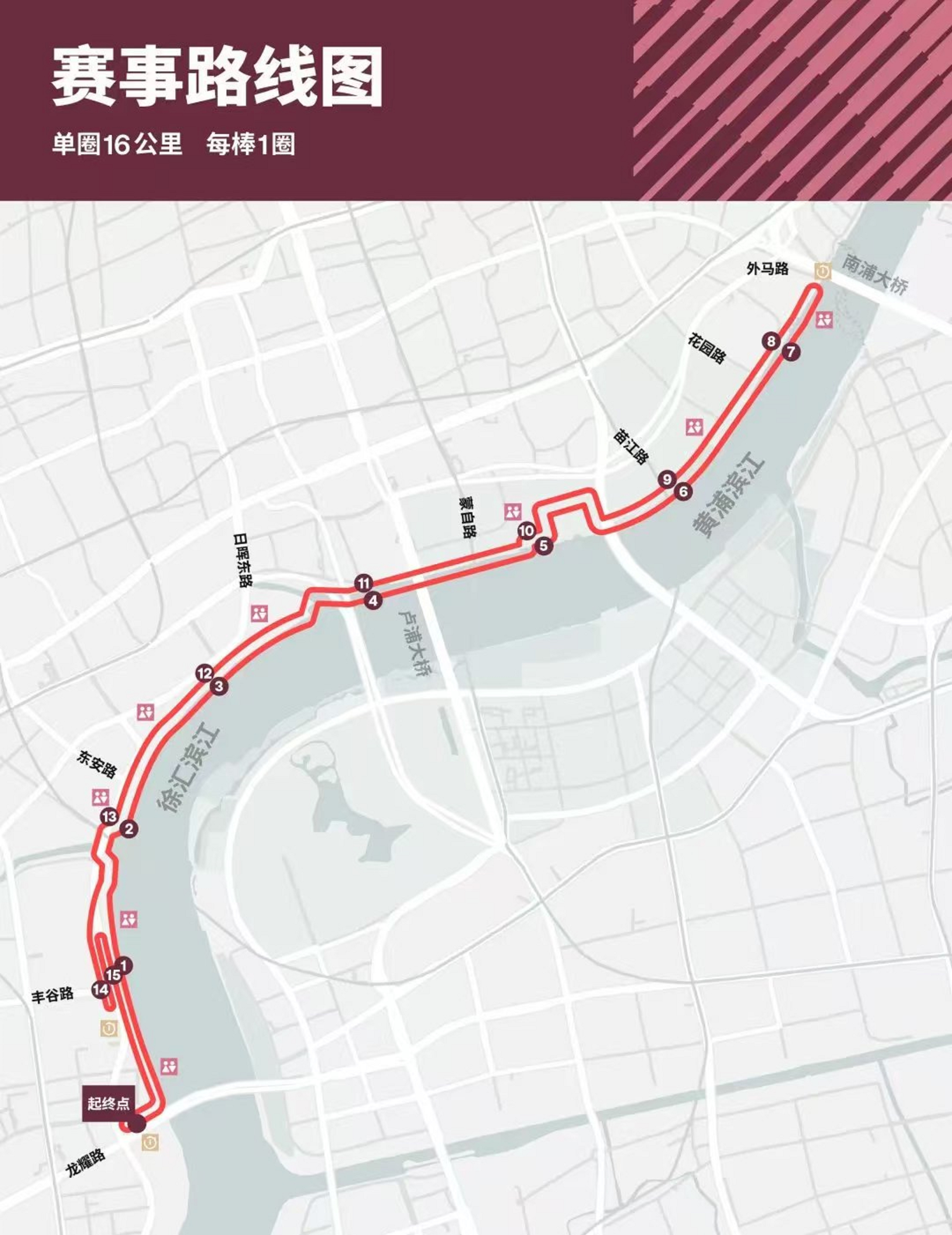 比赛采用公路绕圈赛,每棒选手需连续完成累计16公里后方可进行棒次交接。
