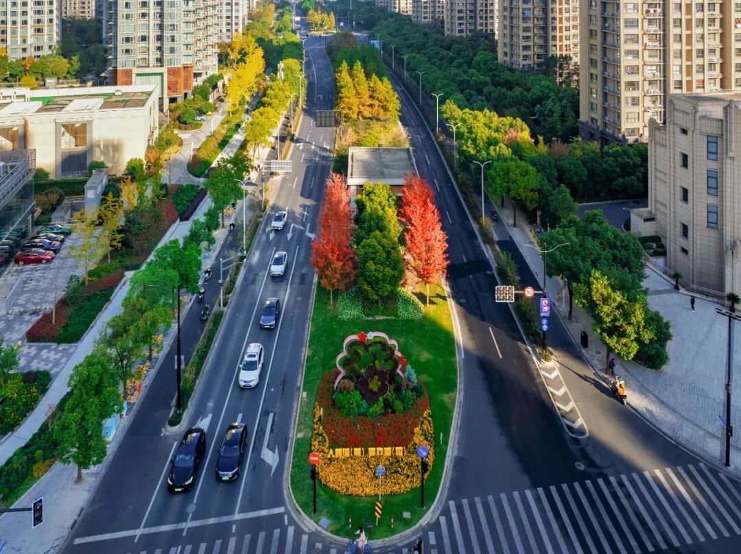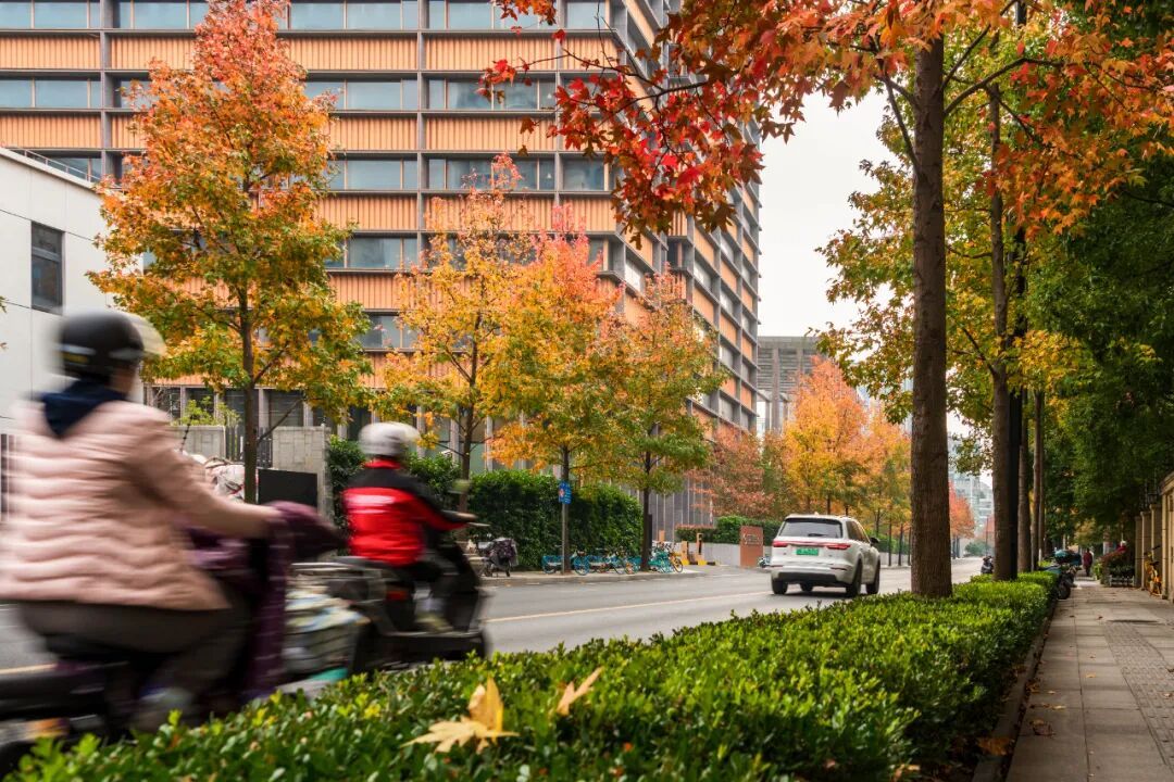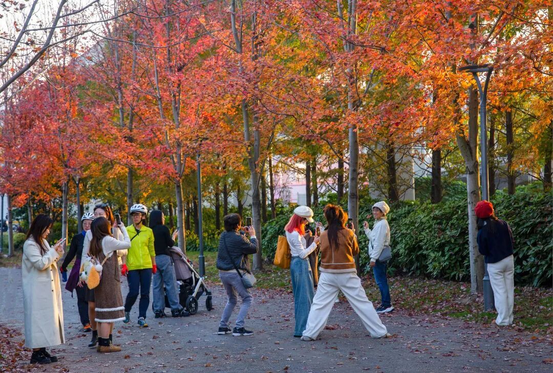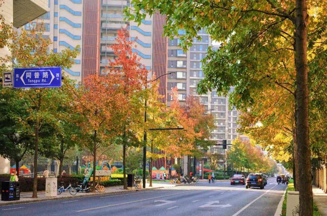 这几日普陀正悄然变换着色彩,将自然与都市交织成美丽的画卷。街道两旁的梧桐树披上金甲,枫树如烈火般燃烧,每一片枫叶都仿佛被阳光点燃。梧桐叶片在微风中轻颤,如蝶舞般飘落,铺就一条斑斓的地毯。阳光在地面投下碎金般的光斑,行人踩过,发出细微的沙沙声。红、黄、绿三色相互交织、渗透,构成了一幅如诗如画的绝美景色。漫步其间,仿佛置身于梦幻的童话世界,让人心醉神迷、流连忘返。
