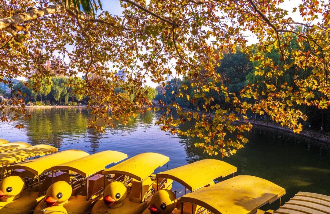 花溪路、桐柏路、棠浦路作为“落叶不扫”的景观主干道,两侧基本上都是梧桐树,树叶在阳光的透射下成金黄色,阳光穿过树干的投影会增强立体感,无论拍摄大场景还是单拍树影都能入画。拍摄人与景色相融的照片时不仅要注意画面的构图,同时要利用镜头不同焦段来达到突出主体人物的目的。注意利用虚实来突出主体,拍出不一样的画面。