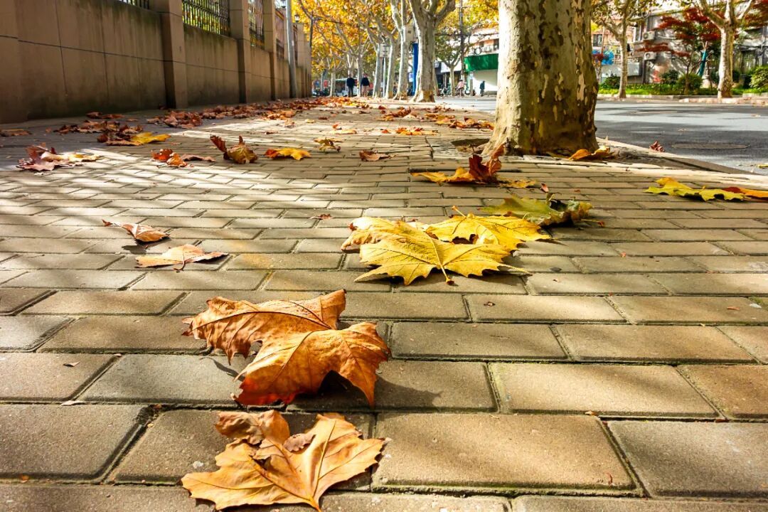 落叶,即便是雨后也能够拍摄,利用落叶被雨水打湿的反光,将树叶作为前景,利用镜头景深原理控制虚实,可以拍出与众不同的照片。
