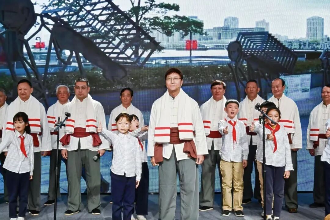 作为沪东工业区的溯源地,定海的文明传承始终与工业基因紧密相连。活动现场,国家级非物质文化遗产“上海港码头号子”的创新演绎,成为全场焦点。上海港码头号子表演队与上海师范大学附属滨江实验小学的学生们联袂呈现《码头之声》,将传统劳动号子融入现代表演形式,让百年工业文明在青少年的歌声中焕发新生,也让非遗文化成为连接历史与未来的精神纽带。