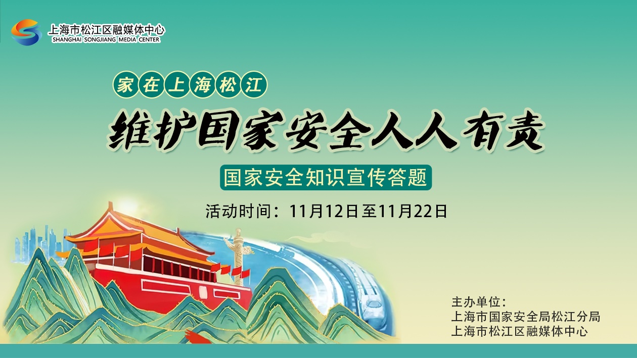 11月12日至22日,上海市国家安全局松江分局、松江区融媒体中心联合推出“维护国家安全人人有责”国家安全知识宣传答题活动。本次活动通过“上海松江”客户端公益互动平台发布,吸引了市民网友踊跃参与。截至活动结束,共有近8200人次关注,1100余人次参与,近400人次获得了幸运奖品。