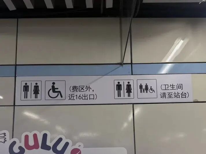 针对车站结构复杂、换乘通道较长、站台空间有限等客观条件,车站组织工作人员开展多轮实地踏勘,在换乘通道、出入口等关键位置新增导向标识共计24处,科学优化标识布点,显著提升远距离可视性与寻厕效率。为帮助乘客快速、准确找到厕所位置,车站提供多种便捷指引方式: