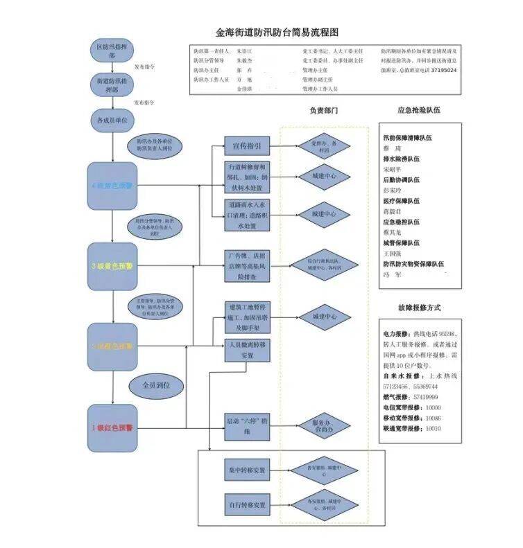 金海街道还制定了《突发公共事件总体应急预案》《防汛防台专项应急预案》《危险区域内人员安全撤离预案》等制度。设立23处应急避难场所,4处集中转移安置场所,组建7支骨干应急队伍及36支微型消防力量,确保在突发事件面前,能做到有备无患、迅速响应。