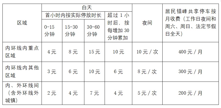 1.有关白天和夜间的具体时段以道路停车收费标志牌公示的时段信息为准;
