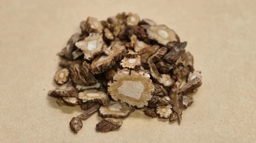当归经低温烘干,质柔韧,断面黄白色,有浓郁的香气。