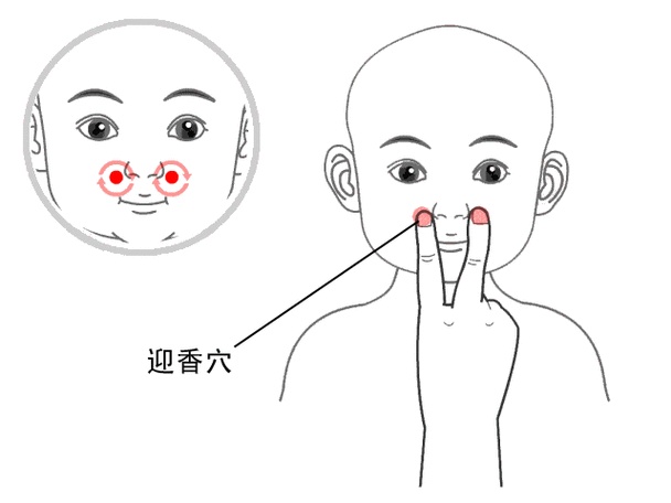 按揉迎香穴(鼻翼旁,30次);
