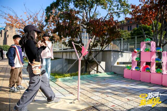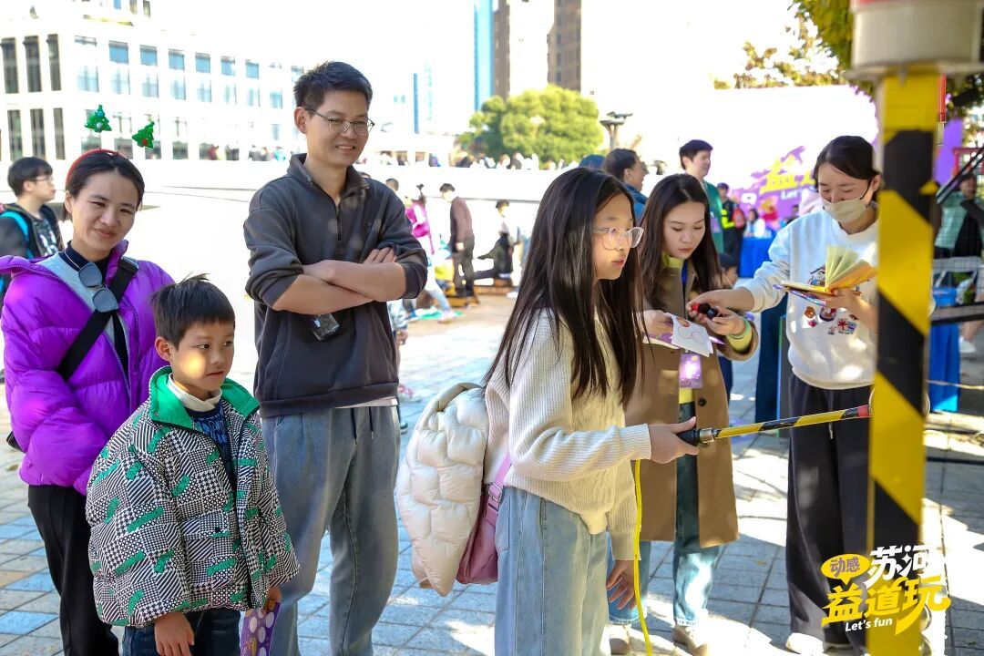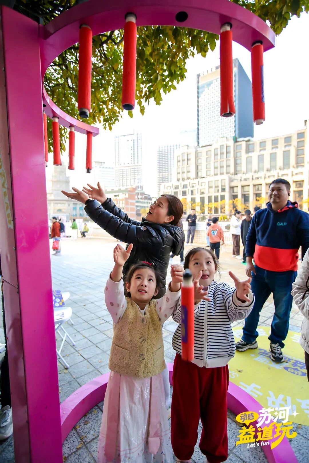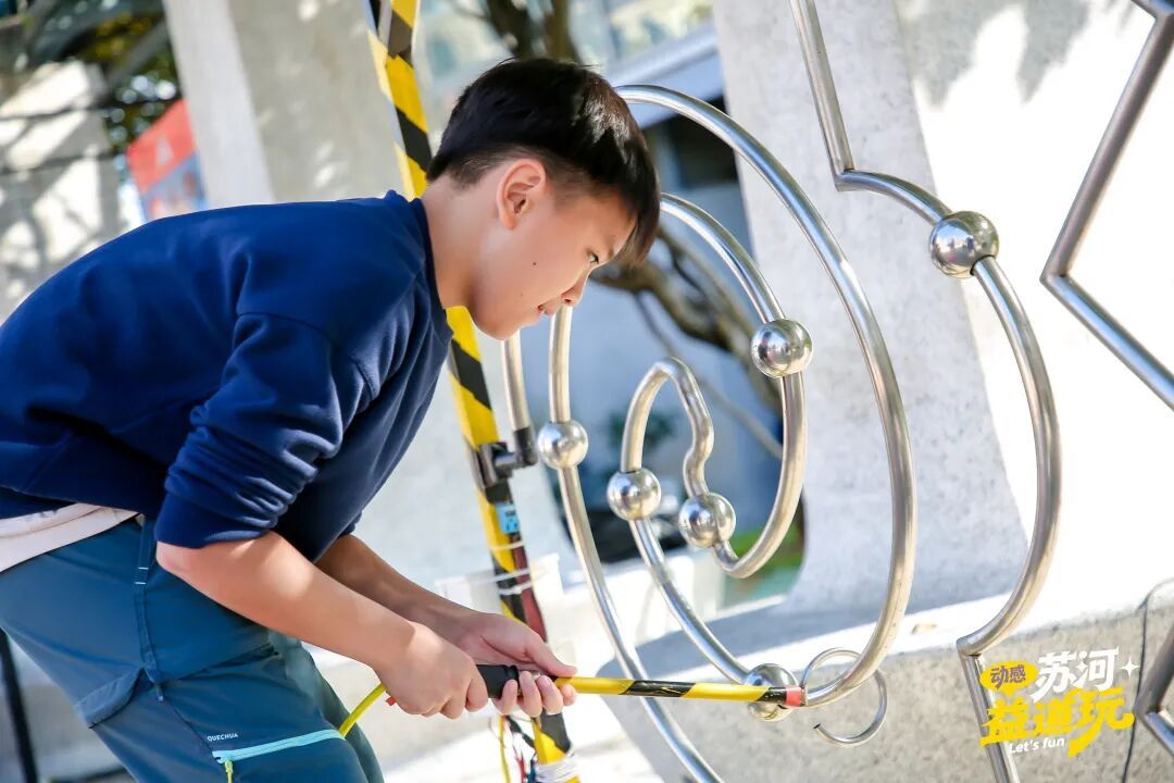 “穿越火线”挑战中,参与者屏息凝神操控铁环穿越模拟苏州河六座桥梁的障碍赛道,在趣味闯关间感受城市水系文化;