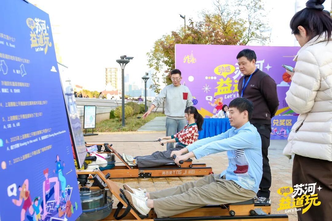 划船机挑战区前,市民们纷纷驻足体验,在挥桨间感受运动魅力,各互动点位串联起充满趣味与创意的运动天地,让大家在挥洒汗水中释放活力。