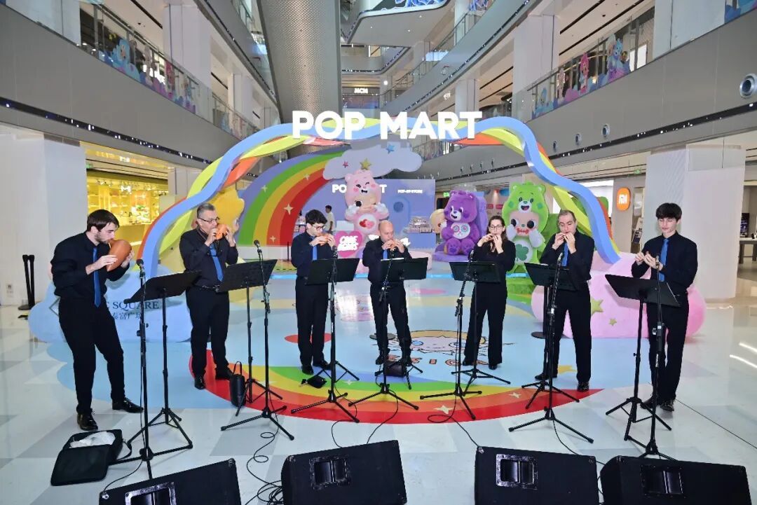 多元音乐治愈人心。静安大悦城摩天轮天台上,Aurora Echo跨国乐队用古典与现代交融的旋律点亮夜空;中信泰富广场的意大利百年陶笛GOB七重奏,以七声部演绎经典;迪士尼经典电影配乐铜管八重奏连演两场,《狮子王》《冰雪奇缘》的动人旋律在历史空间中碰撞出奇妙共振。在延安饭店草坪与静安合生MOHO自在“发声”的两场音乐开放麦,让普通人在星空、暖阳下自由开唱,释放热爱。