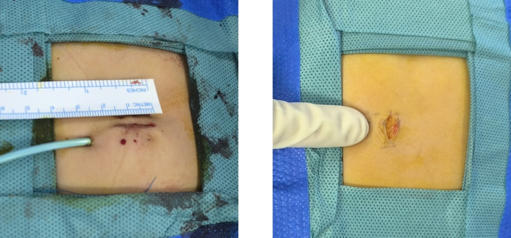 两位患儿经胸小切口长度均小于2cm,不足一指宽。