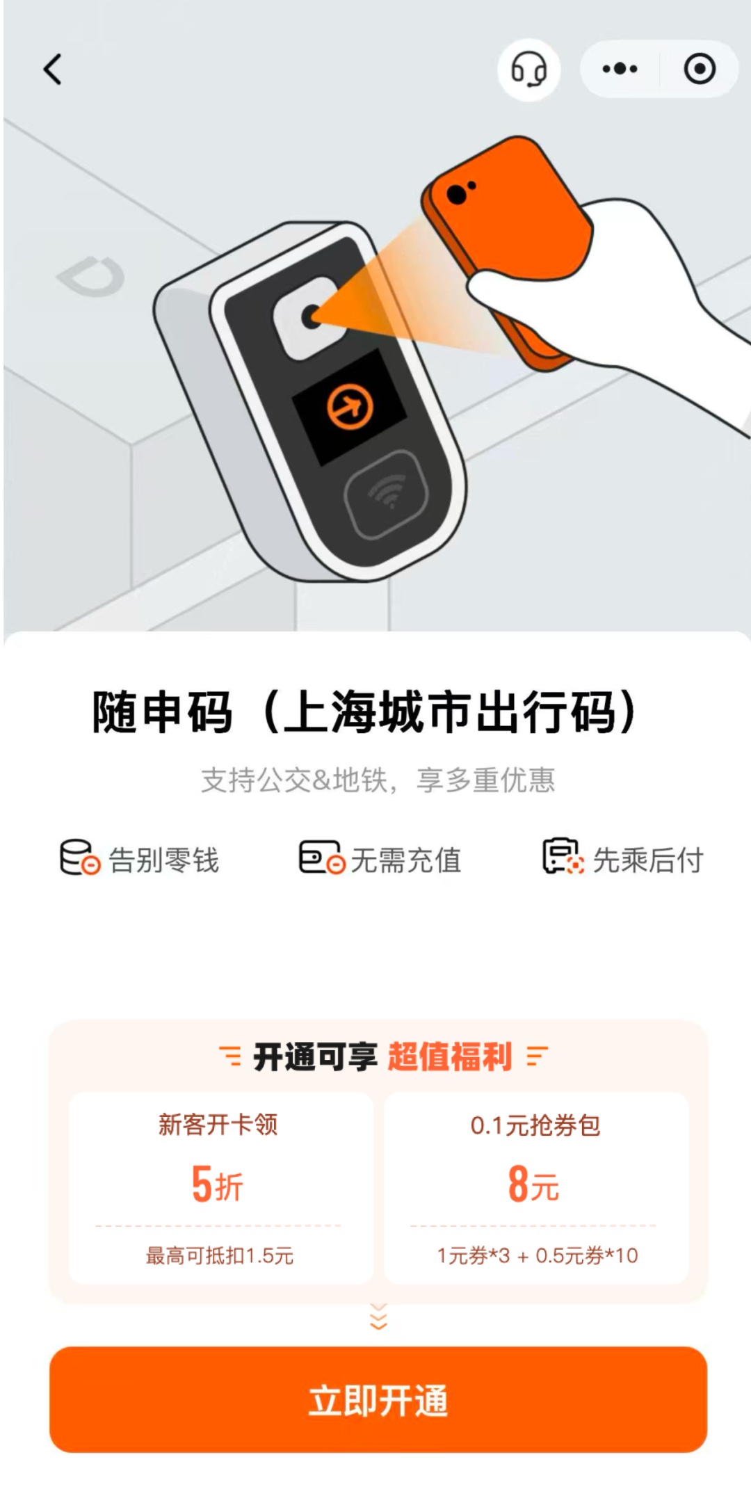 扫码进入活动页后点击“打开随申行-滴滴特惠”,进入公交地铁板块开通“随申码”;