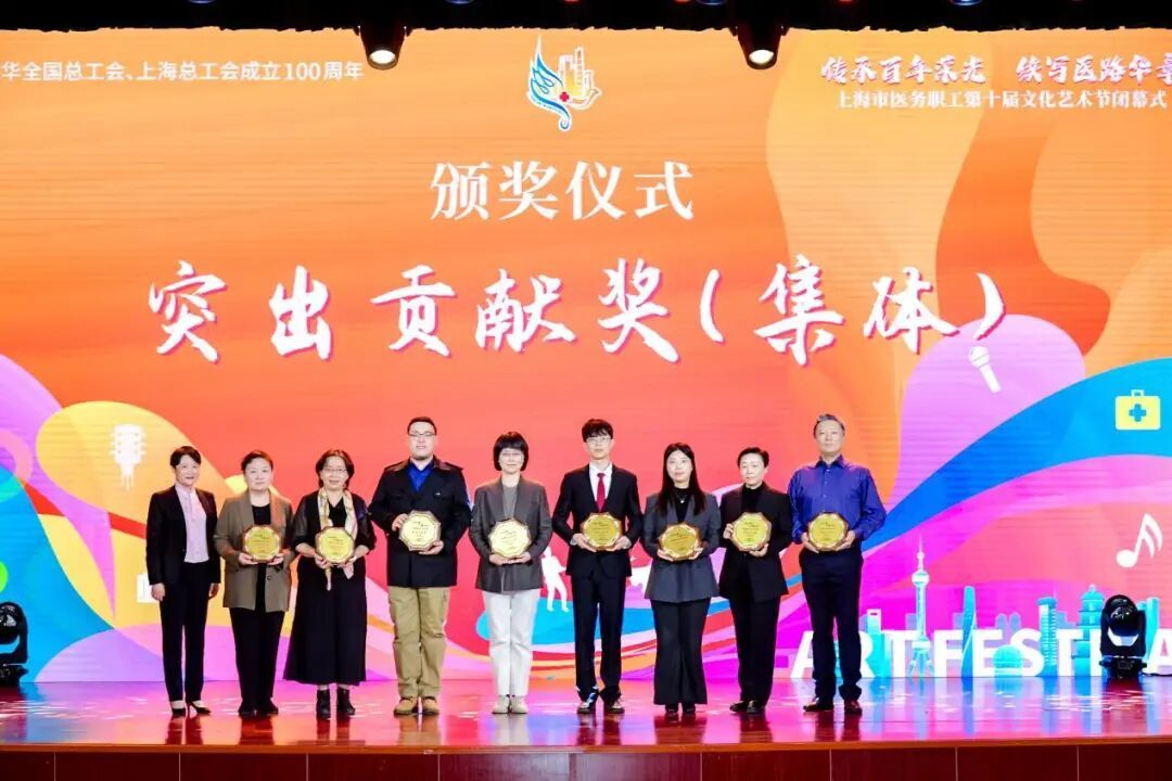 2025年是中华全国总工会成立一百周年、上海总工会成立一百周年暨五卅运动一百周年的重要历史节点,在历时七个多月的上海市医务职工第十届文化艺术节中,华山医院工会积极组织、扎实谋划,带领华山“油菜花”展现出百年华山的文化底蕴和卓越风采,取得优异成绩:集体荣获艺术节乙组团体总分第一、优秀组织奖、突出贡献奖(集体);院工会卢霏、张弋荣获突出贡献奖(个人);我院2025年第15届文化科技艺术节荣获市卫健系统基层工会“十佳艺术节”;在包括劳模宣讲、舞蹈、朗诵、主持人、歌唱、摄影、书画等7个艺术节单项比赛中华山荣获3个一等奖、3个二等奖、2个三等奖等多项荣誉,成绩名列翘楚。