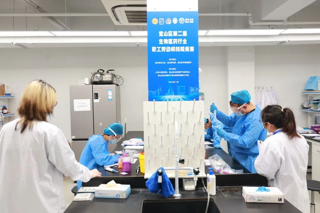 近日,由宝山区总工会、宝山区科委、宝山区市场监管局联合主办,上海大学医学院、宝山区生物医药产业联合会、宝山区生物医药产品注册指导服务工作站共同承办的2025年宝山区第二届生物医药行业职工劳动和技能竞赛,在上海大学医学院圆满落下帷幕。本次竞赛作为第三届宝山科创人才周的重要活动之一,共吸引了区内20多家生物医药企业参与,40名岗位尖兵闯进决赛同场竞技,以赛促学、以赛促练,展现出宝山生物医药行业职工精湛的专业技能和昂扬的精神风貌。
