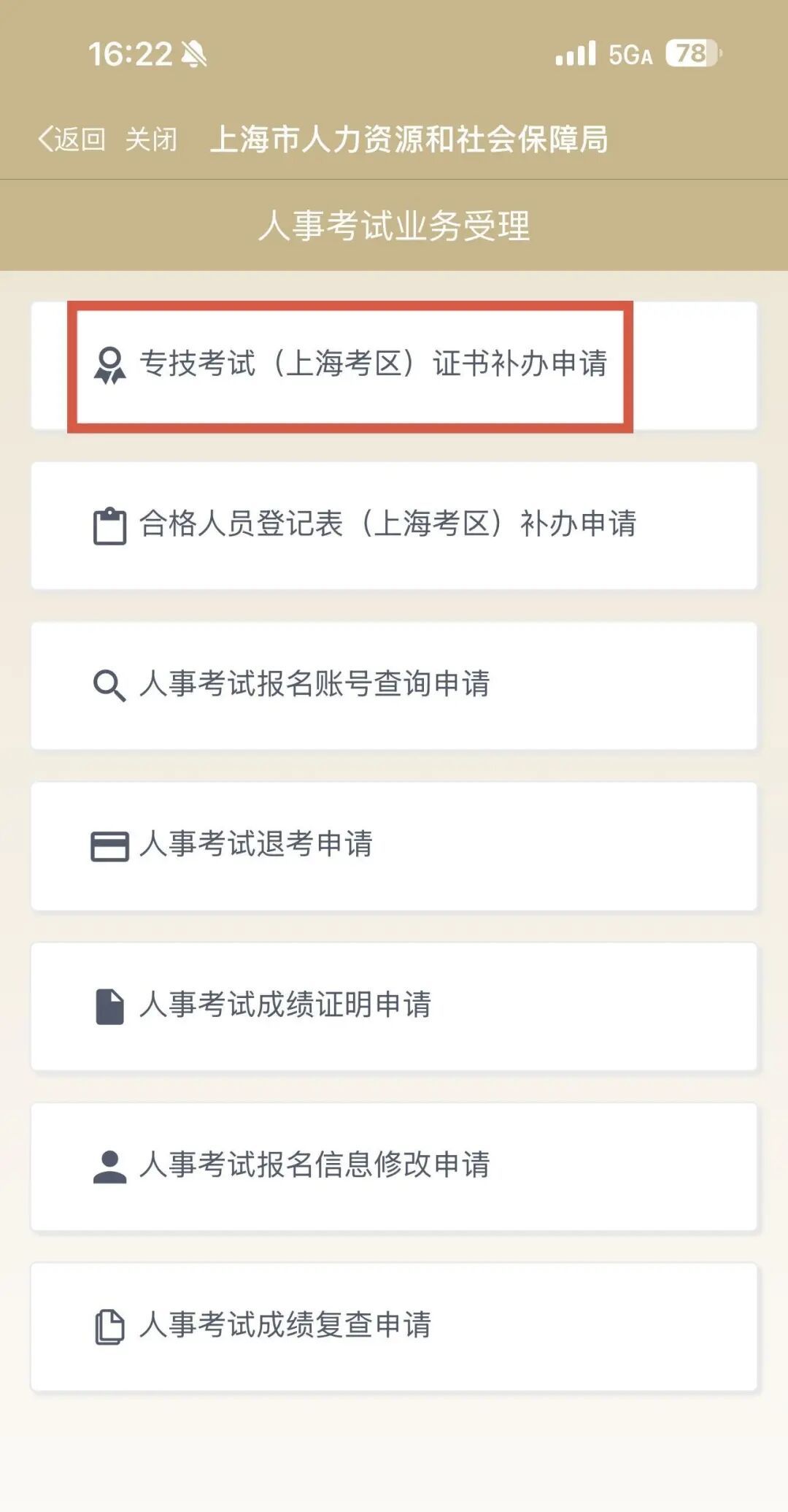 各位专业技术人员注意啦!如需补办专技考试证书不用慌,相关办理流程小编已为你整理完毕,足不出户就能轻松搞定。 办理流程 1、手机登录操作。 第一步:登录 “随申办”APP ,点击底部 “办事”栏目,在“服务大厅”中点击“按部门,划动选择“市人社局”板块; 第二步:点击“人事人才”板块,选择“人事考试业务受理”; 第三步:选择“专技考试(上海考区)证书补办申请”的事项,进入办理页面。 2、电脑登录操作。 使用电脑登录网址(http://www.rsj.sh.gov.cn/ksy/ywslsb/),可扫码登入或账号密码登入。登录系统后选择“专技考试(上海考区)证书补办申请”进行办理。 温馨提示 1、业务办理须由本人申请,不得代办。 2、申请人须按流程完成全国专业技术人员职业资格证书补办申请,并提供真实、准确的信息。 3、受理通过后,资格证书补办需向相关行业主管部门申报,补办时限各不相同。 4、因不可抗力导致服务暂停或无法正常进行的,请及时拨打12333咨询。 5、已经制发电子证书或考试合格电子证明的,不再补发纸质证书或证明。 专业技术资格证书是职业发展的重要凭证,如有需要,按照以上步骤操作,就能快速完成补办,小伙伴们赶紧收藏备用起来! 编辑:罗时珎 转载请注明来自上海徐汇官方账号