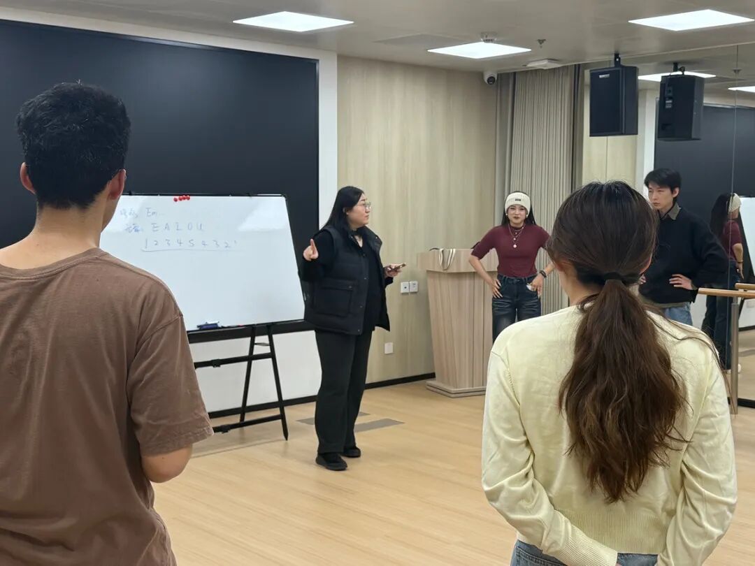 课堂上,老师用“腔体共鸣小游戏”帮害羞的学员打开声音;面对高音难题,她手把手教学“丹田发力”技巧;即便是零基础的“小白”,也能在轻松氛围中掌握胸腹式呼吸法,告别“大白嗓”。“原来我也能飙出高音!”“和同事一起排戏太快乐了!”课后,学员们纷纷分享收获——在这里,他们不仅学技能,更找到了志同道合的伙伴和释放自我的出口。