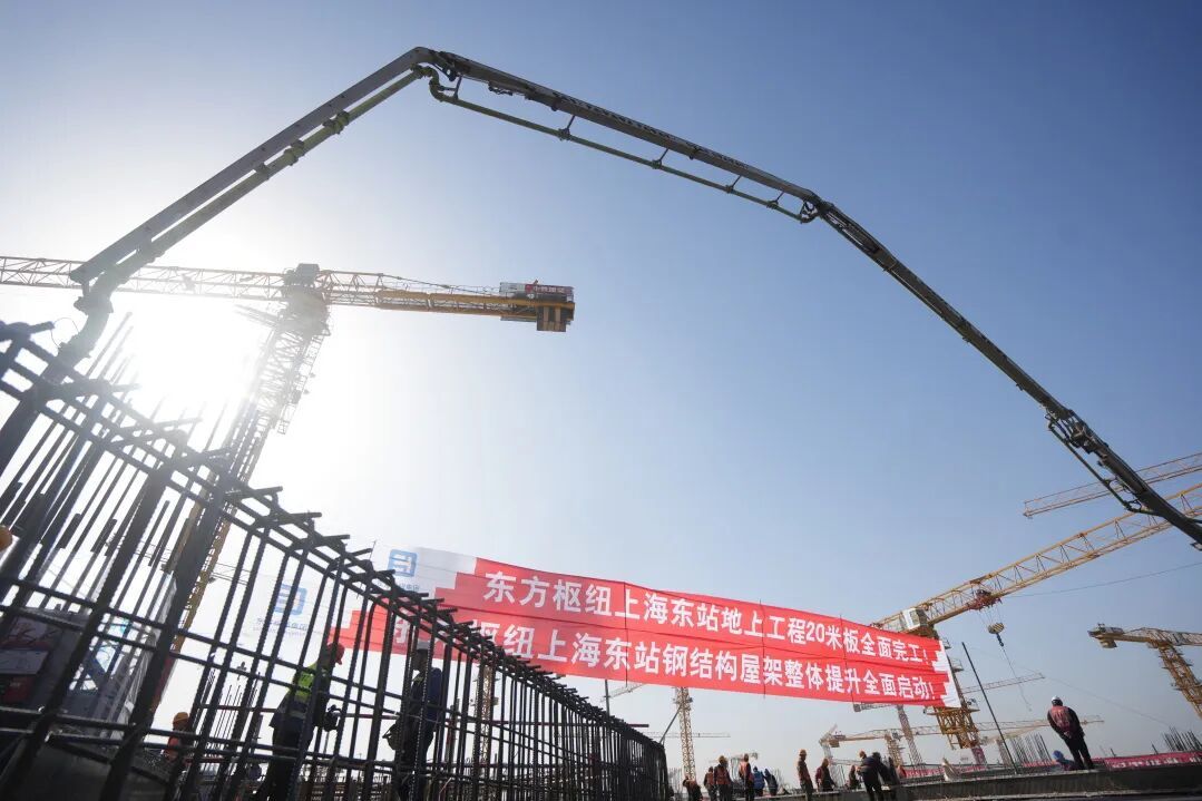 主站房及南北咽喉区混凝土主体结构全面封顶,也为加快上盖综合开发、推进站城融合创造了重要条件。站场区上盖开发总量约24万平方米,是国内首次在铁路客站咽喉区实施大规模上盖开发,也是集约用地、立体城市等内涵式发展理念的生动实践,通过地面与天街双首层设置,实现站场区与站前区在物理空间上的融合。同时,统筹布局五星酒店、甲级办公、大型商业等高端多元功能业态,推动枢纽与城市在功能上的有机融合,促进站中有城、城中有站成为现实。 上海东站位于浦东新区祝桥镇,是集国家铁路、市域铁路、城市轨道交通等多种交通功能以及站场城开发于一体的大型综合交通枢纽,总建筑面积约133万平方米,站场规模为15台30线。上海东站采取“地上三层、地下三层”的立体布局,其中,地上部分主要由本次完工的20米盖板层,即高架候车层、站台层和地面层构成,通过科学布局实现人车分流、进出站分离,有效提升旅客通行效率和出行体验。 下一步,按照新时代国际开放门户枢纽新标杆的目标定位,东方枢纽集团将着力打造人流、物流、资金流、信息流集聚的国际枢纽会客厅,将上海东站从单一的交通换乘途经地升级为集聚人气、创造价值的城市目的地,更好为上海“五个中心”和现代化人民城市建设提供有力支撑。