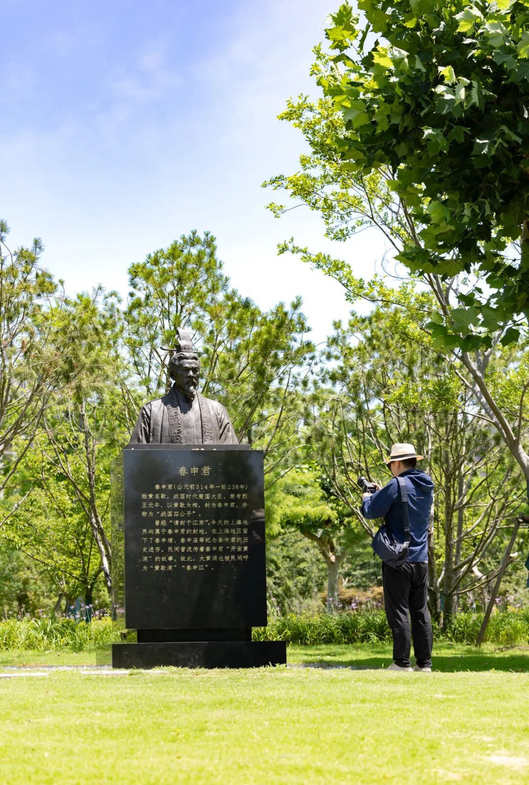步入绿意盎然的春申公园,一尊定格“请封江东”时期的春申君黄歇雕像静默矗立,他目光如炬,仿佛凝视着他脚下曾经的故土封地。铜像前,一位孩童稚声问道:“爸爸,他就是让上海叫‘申’的人吗?”