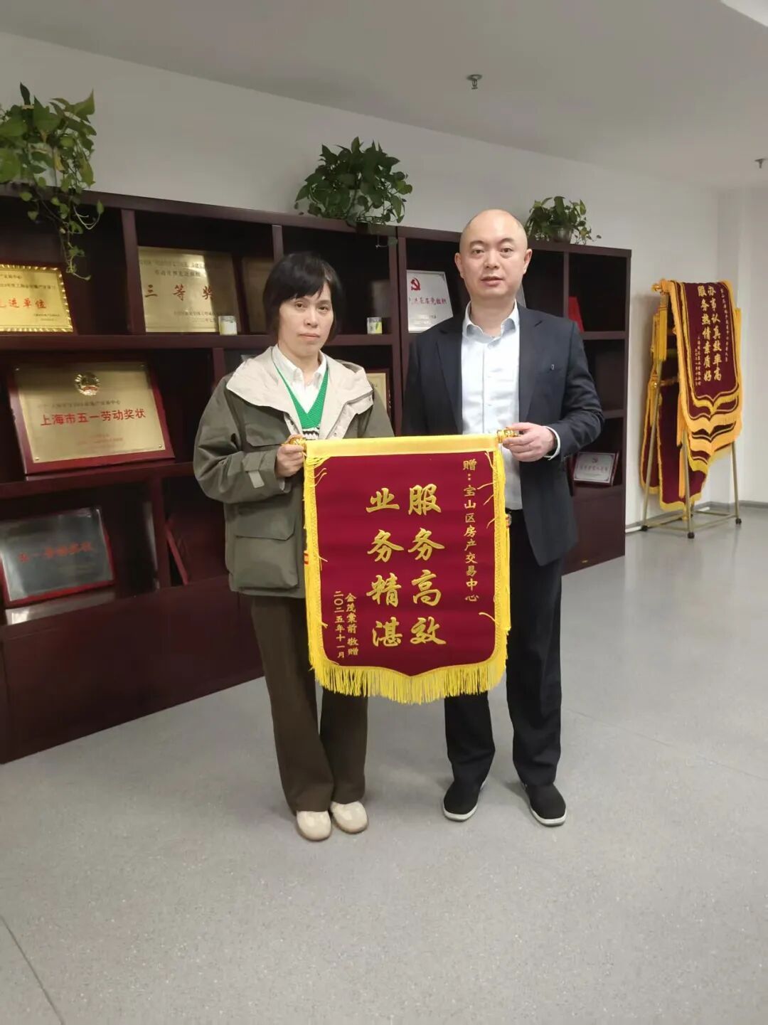 近日,金茂集团旗下上海宝杨茂业建设发展有限公司向交易中心赠送锦旗,衷心感谢交易中心在其杨行板块《棠前名邸》项目认购期间,提供专业指导与全方位服务,助力企业高效、高质量顺利完成限购审核任务,以扎实履职赢得企业的高度认可与诚挚感谢。