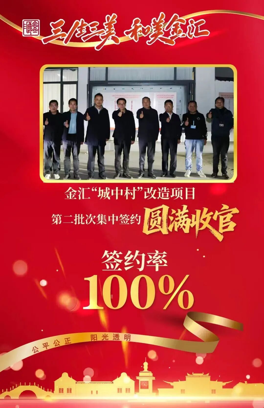 未来已来,可期可盼!金汇镇将以此次集中签约为新起点,持续推进“城中村”改造各项工作,让更多居民早日住进“安全、舒适、宜居”的新家,切实把这项“暖民心、惠民生”的幸福工程办实办好!