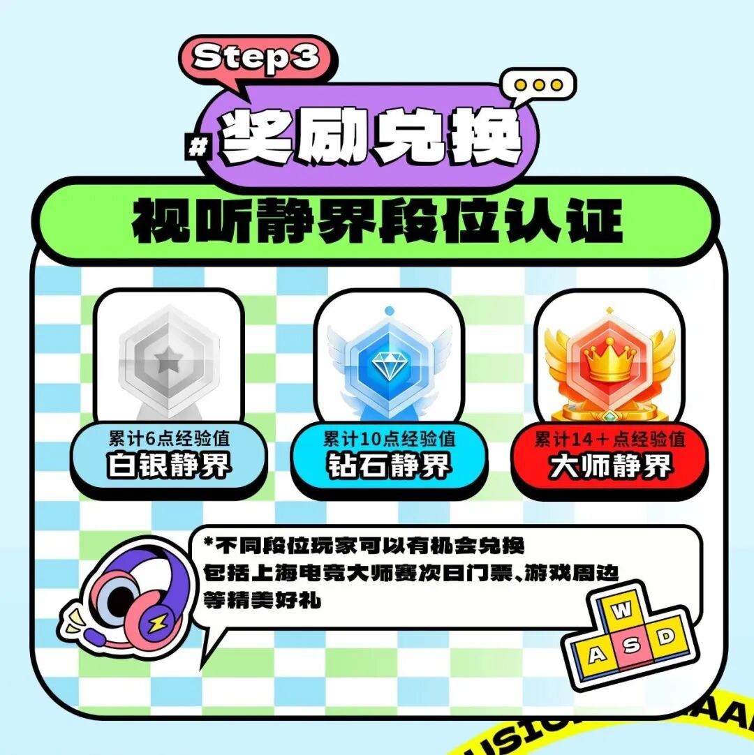 你的每一次参与都“价值连城”!最终,凭积累的“经验值”前往兑奖台,即可兑换精心准备的限定礼品与惊喜周边,更有机会抽取上海电竞大师赛的次日门票哦!
