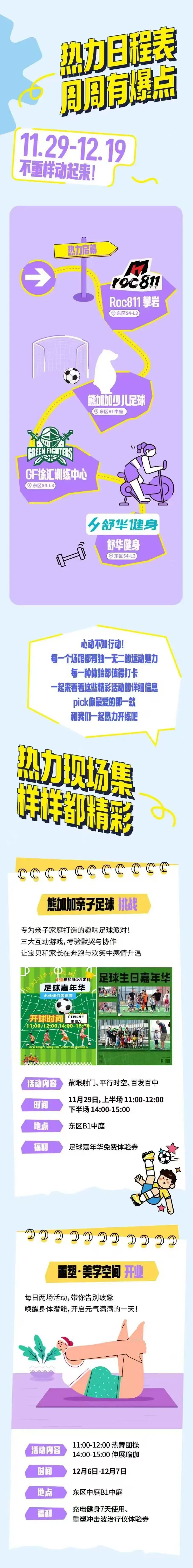 据了解,体育节将持续至12月19日,期间每周将设置不同主题的体育活动,包括亲子足球、健身瑜伽体验和青少年篮球家庭日等。同期,申花、ATP等品牌快闪店也将落地元界街区,为消费者提供一站式、沉浸式的运动娱乐体验。